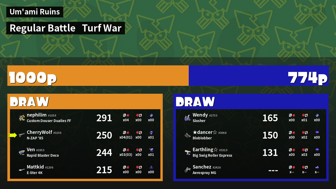 | Mode | Turf War - Regular Battle | ||