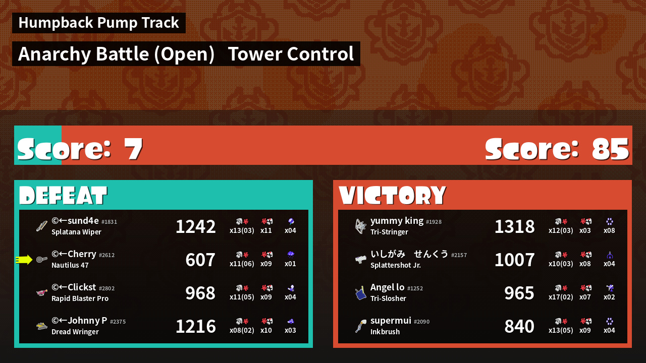| Mode | Tower Control - Anarchy Battle (Open) | ||