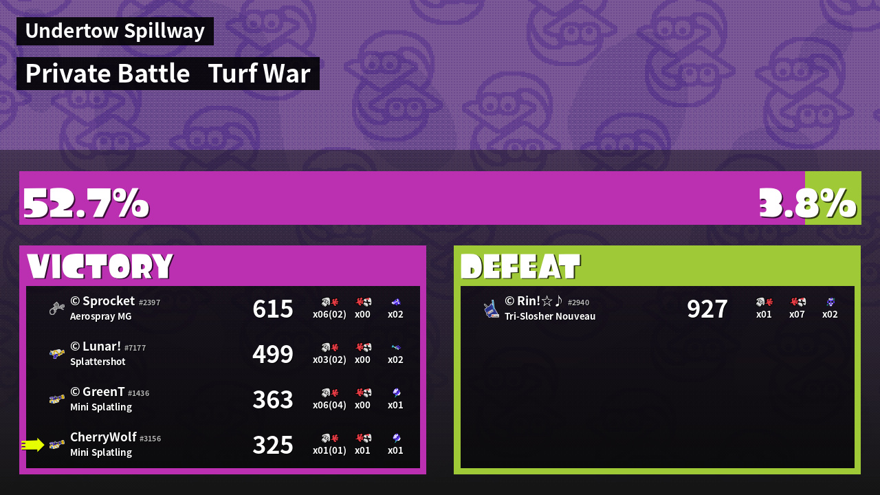 | Mode | Turf War - Private Battle | ||