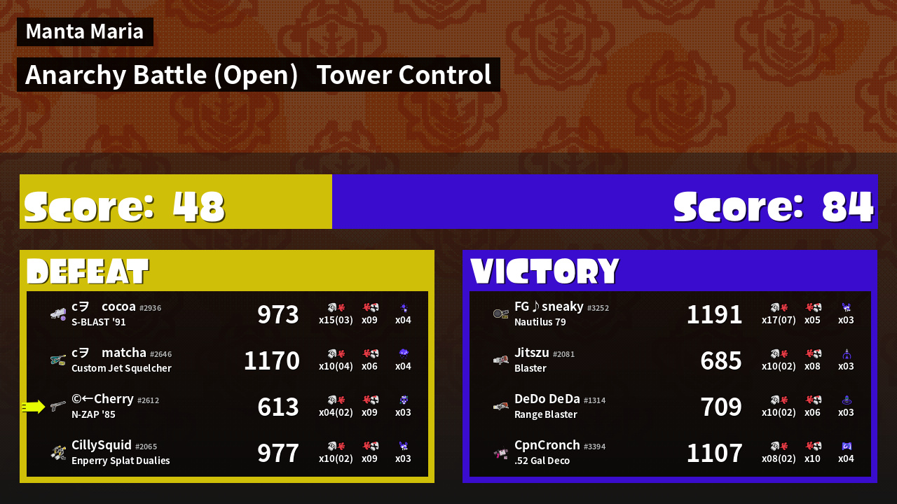 | Mode | Tower Control - Anarchy Battle (Open) | ||