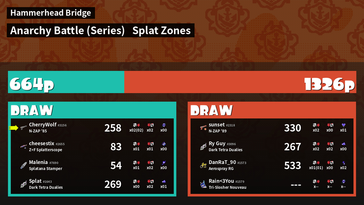 | Mode | Splat Zones - Anarchy Battle (Series) | ||