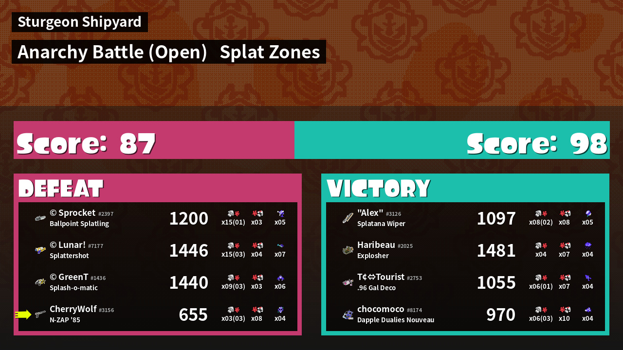 | Mode | Splat Zones - Anarchy Battle (Open) | ||