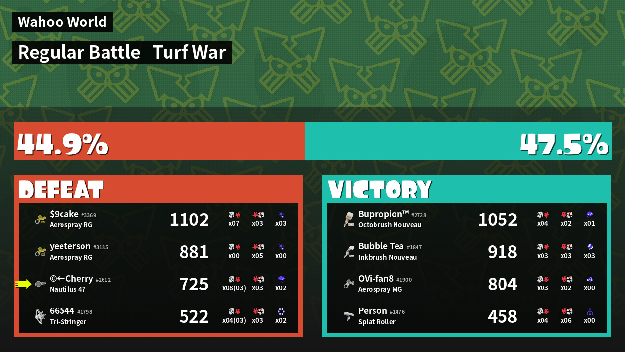 | Mode | Turf War - Regular Battle | ||