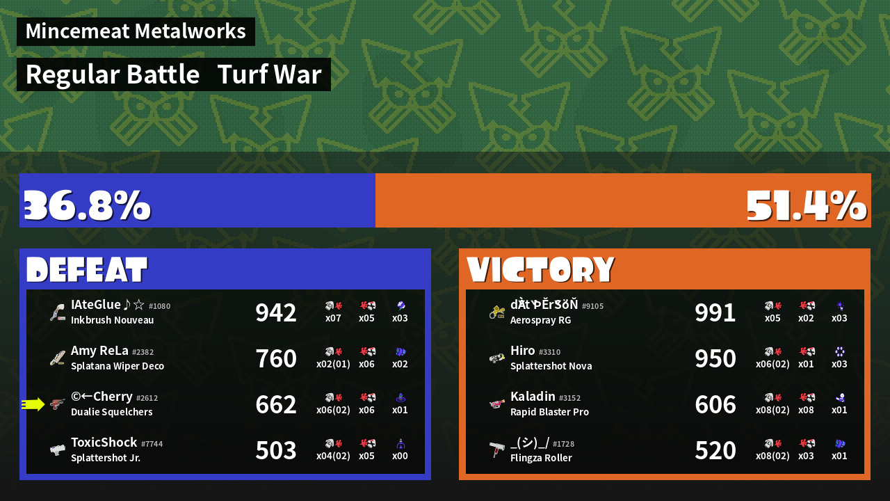 | Mode | Turf War - Regular Battle | ||