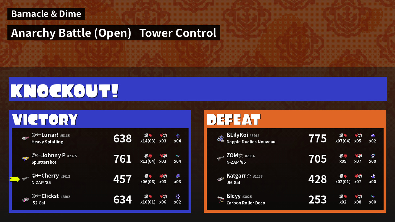 | Mode | Tower Control - Anarchy Battle (Open) | ||