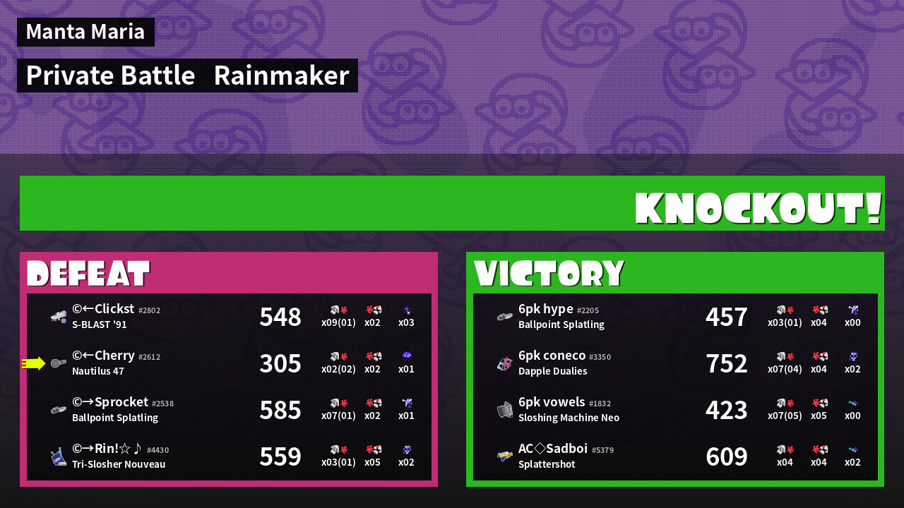 | Mode | Rainmaker - Private Battle | ||