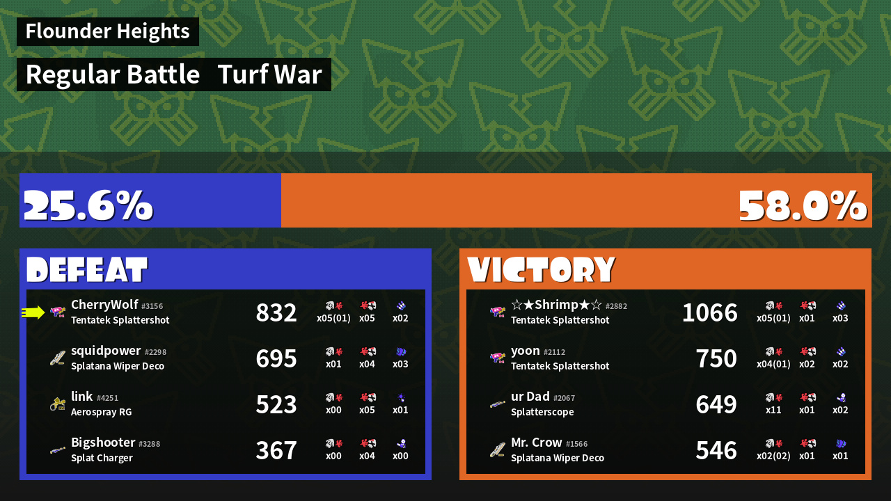 | Mode | Turf War - Regular Battle | ||