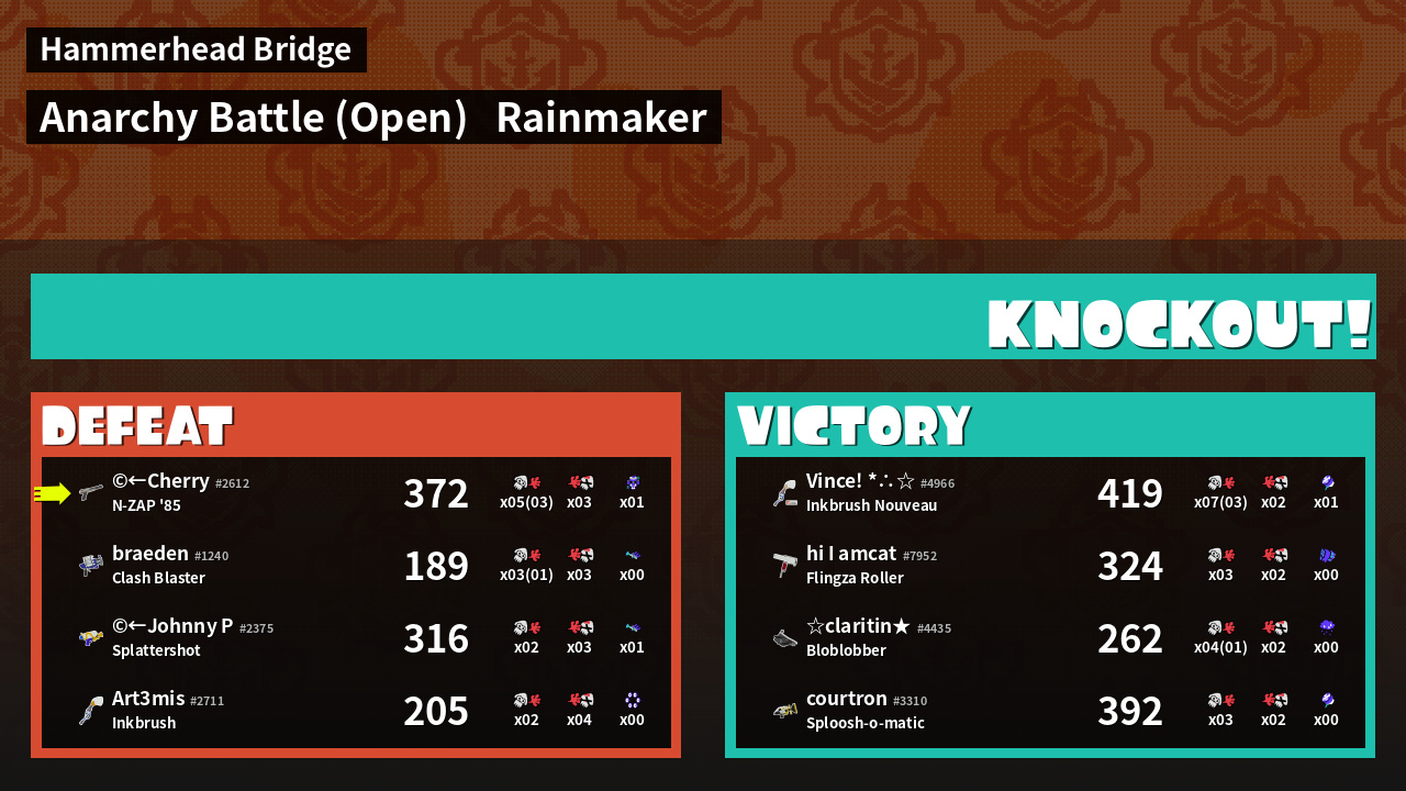 | Mode | Rainmaker - Anarchy Battle (Open) | ||