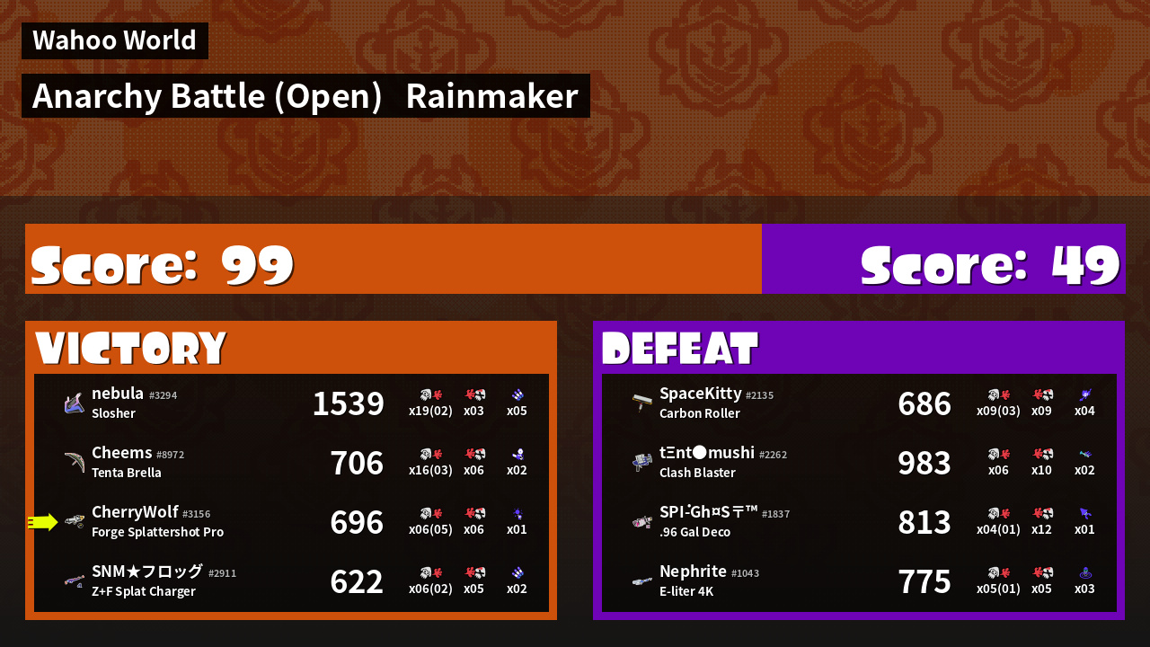 | Mode | Rainmaker - Anarchy Battle (Open) | ||