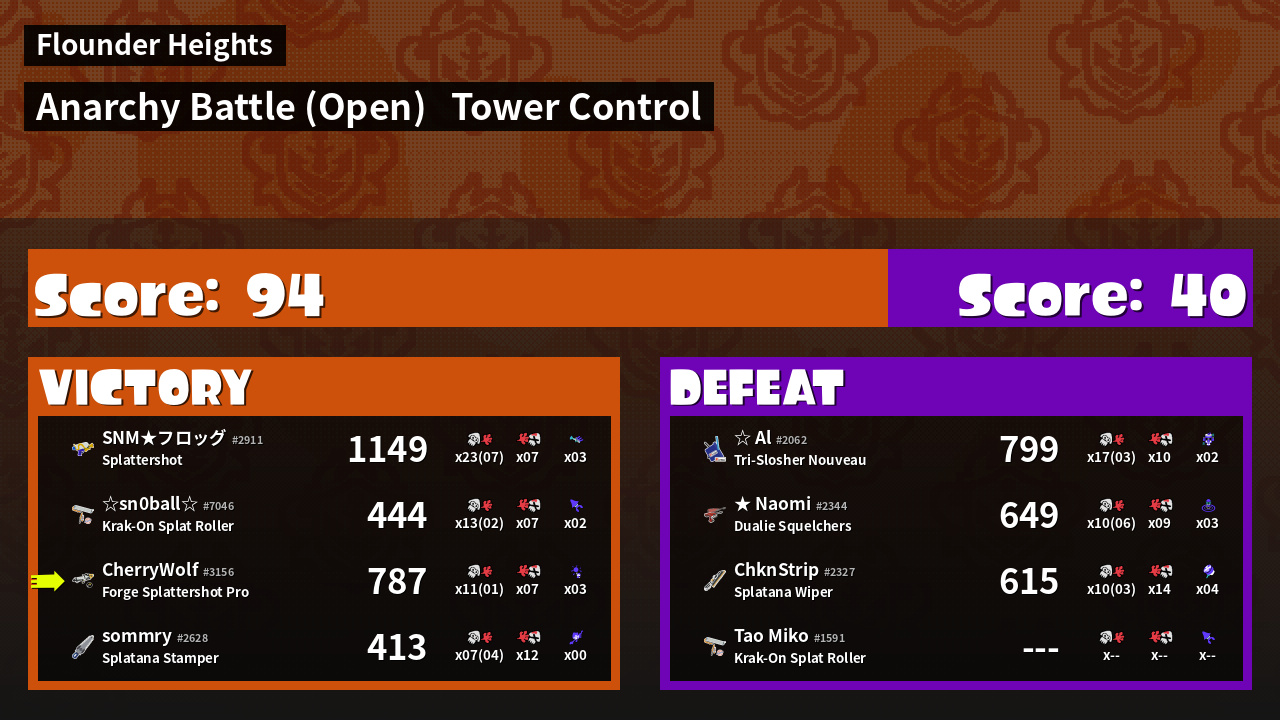 | Mode | Tower Control - Anarchy Battle (Open) | ||