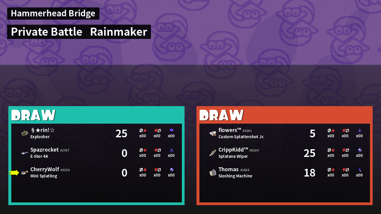 | Weapon | Mini Splatling ( Burst Bomb / Ultra Stamp) | ||