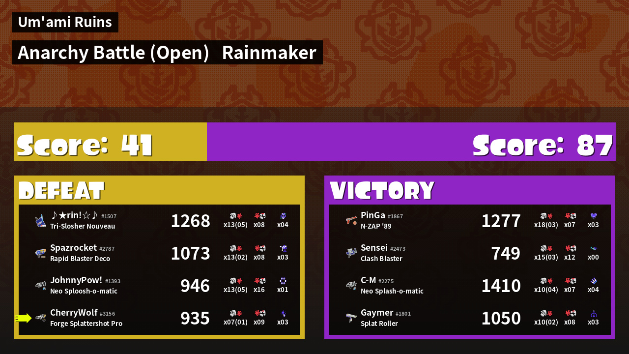 | Mode | Rainmaker - Anarchy Battle (Open) | ||