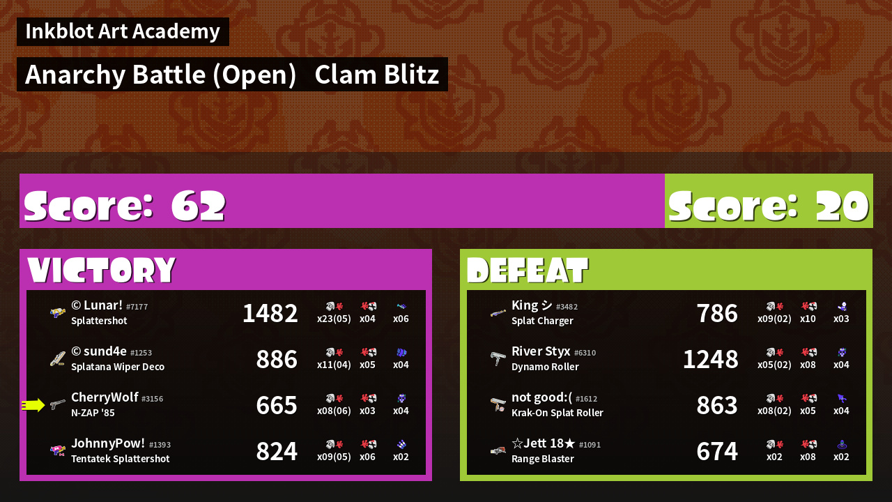 | Mode | Clam Blitz - Anarchy Battle (Open) | ||
