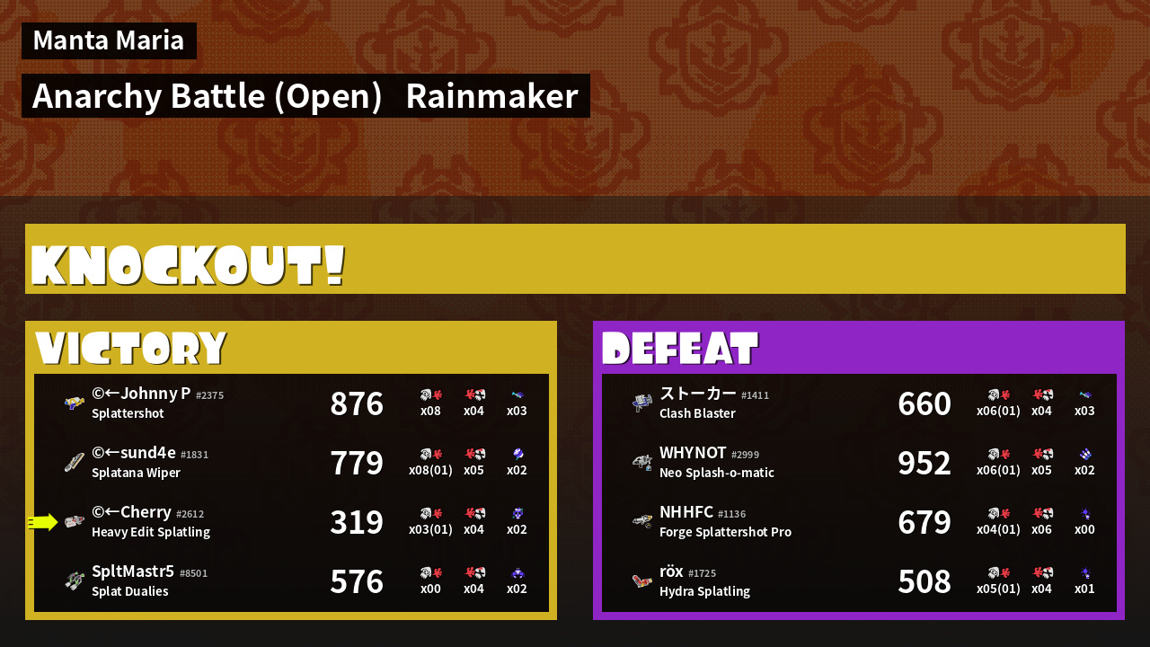 | Mode | Rainmaker - Anarchy Battle (Open) | ||