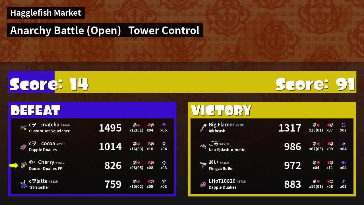 | Mode | Tower Control - Anarchy Battle (Open) | ||