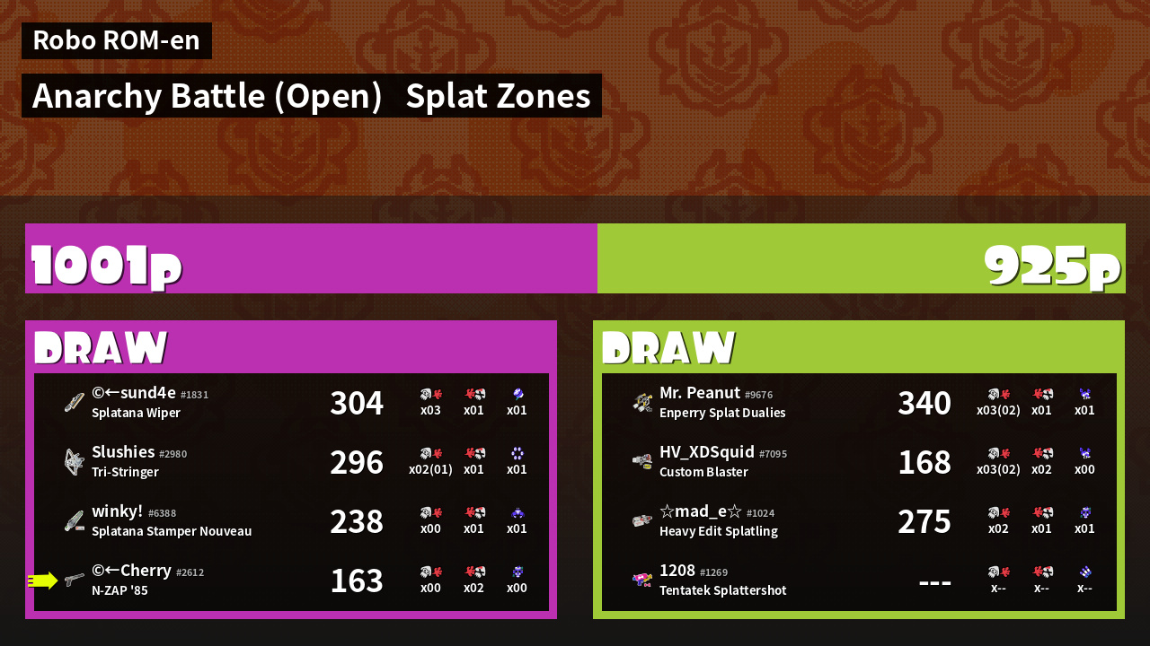 | Mode | Splat Zones - Anarchy Battle (Open) | ||