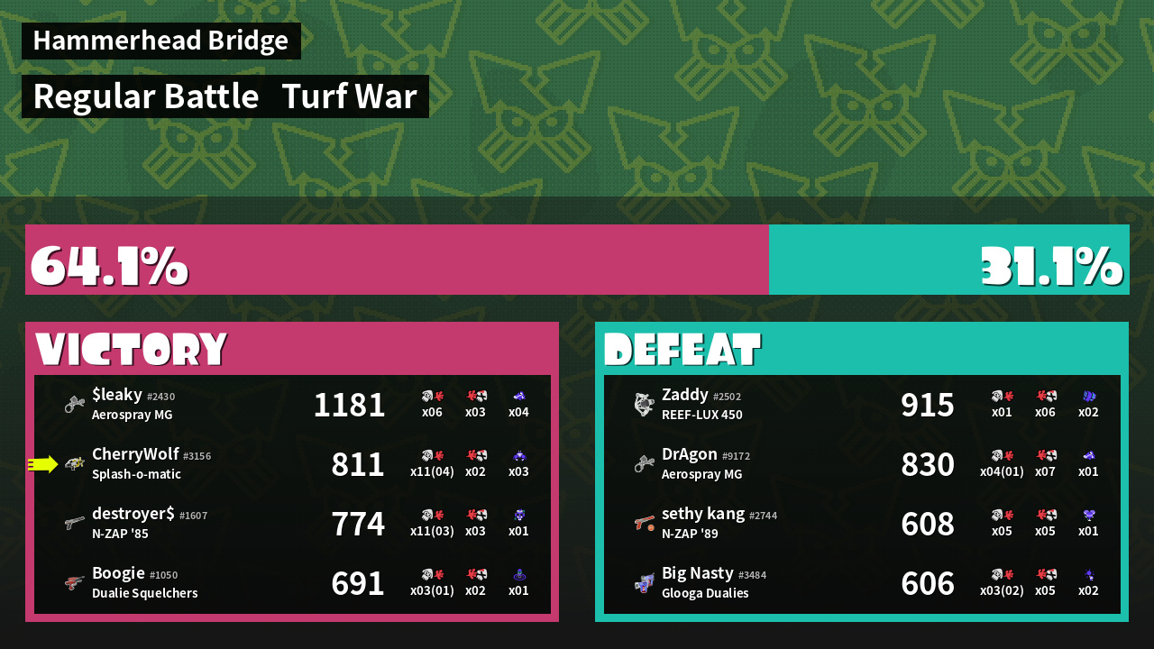 | Mode | Turf War - Regular Battle | ||