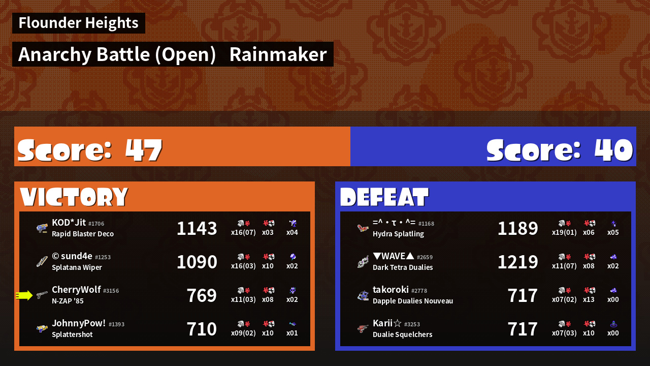 | Mode | Rainmaker - Anarchy Battle (Open) | ||