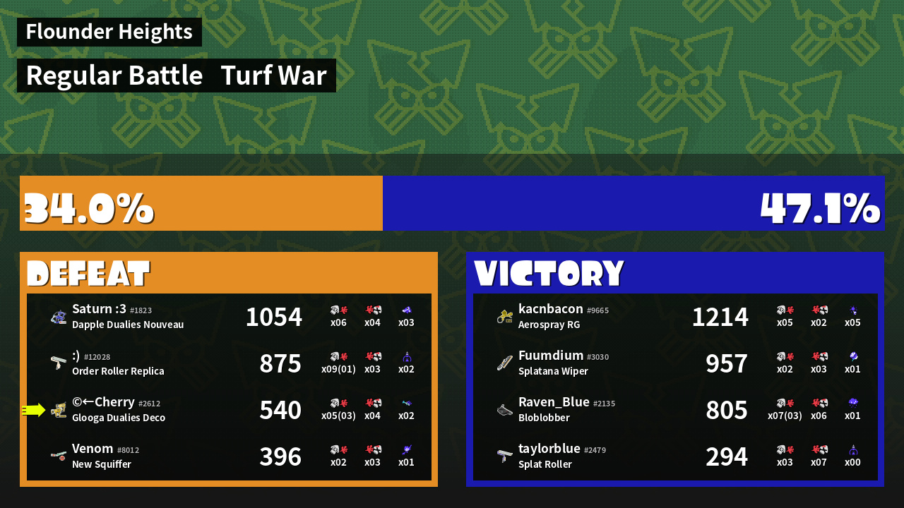 | Mode | Turf War - Regular Battle | ||