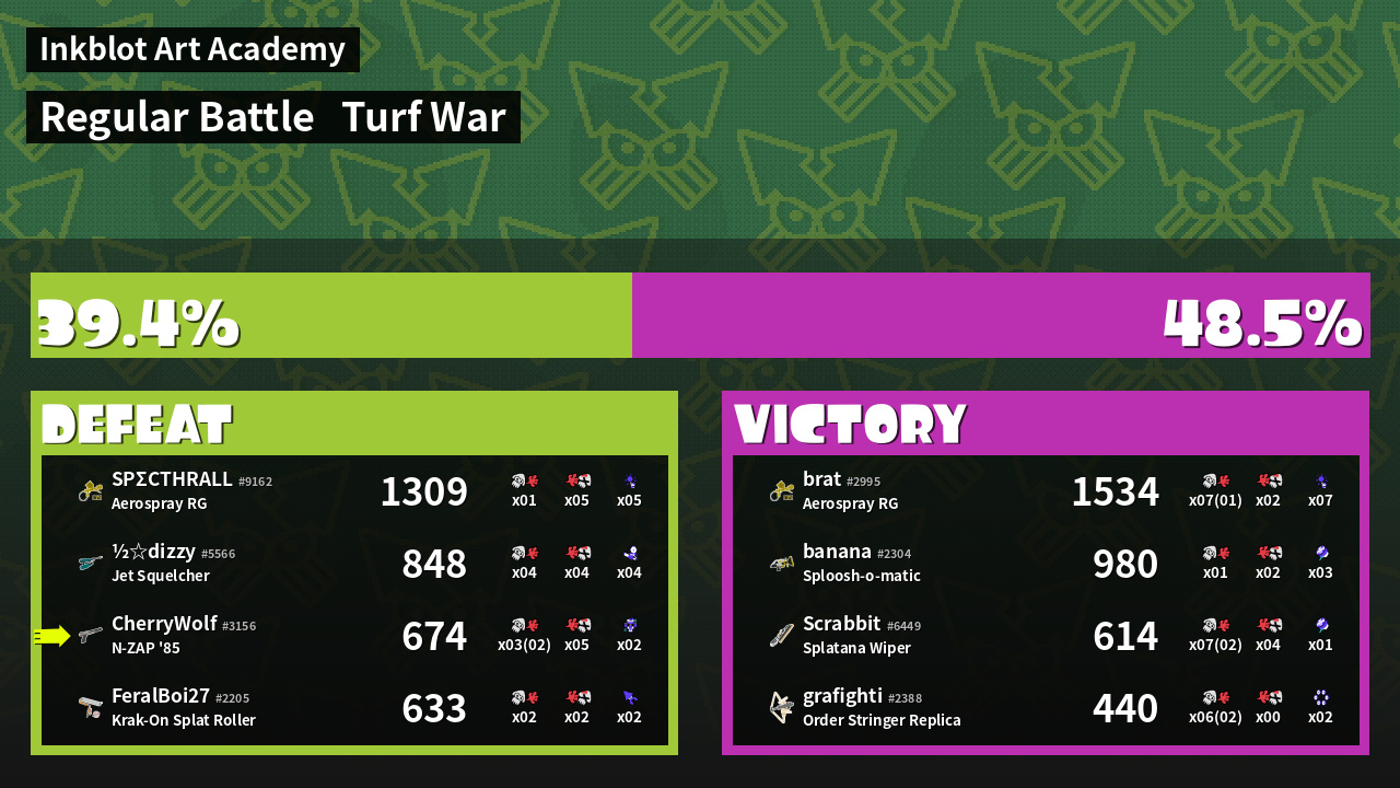 | Medals | #1 Splat Assister #1 Ink Consumer First Splat! | ||