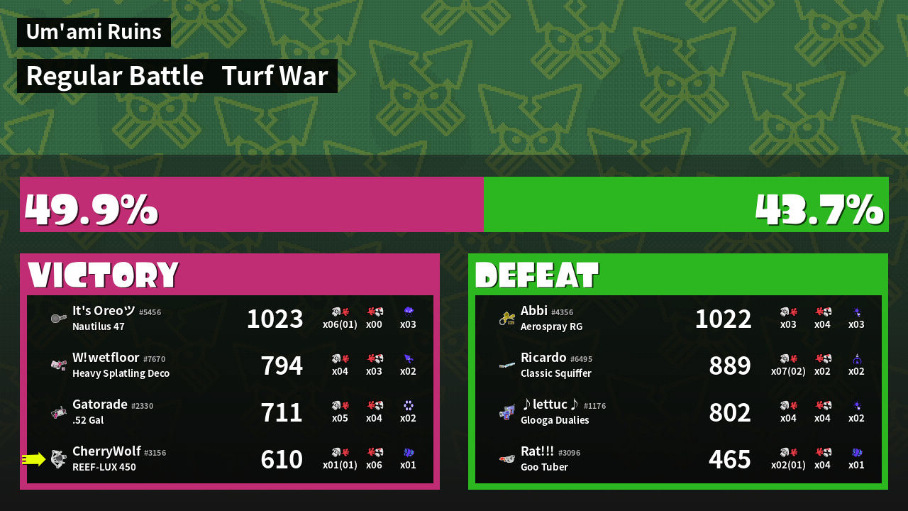| Medals | #1 Splat Assister #1 Ground Traveler #1 Ink Consumer | ||