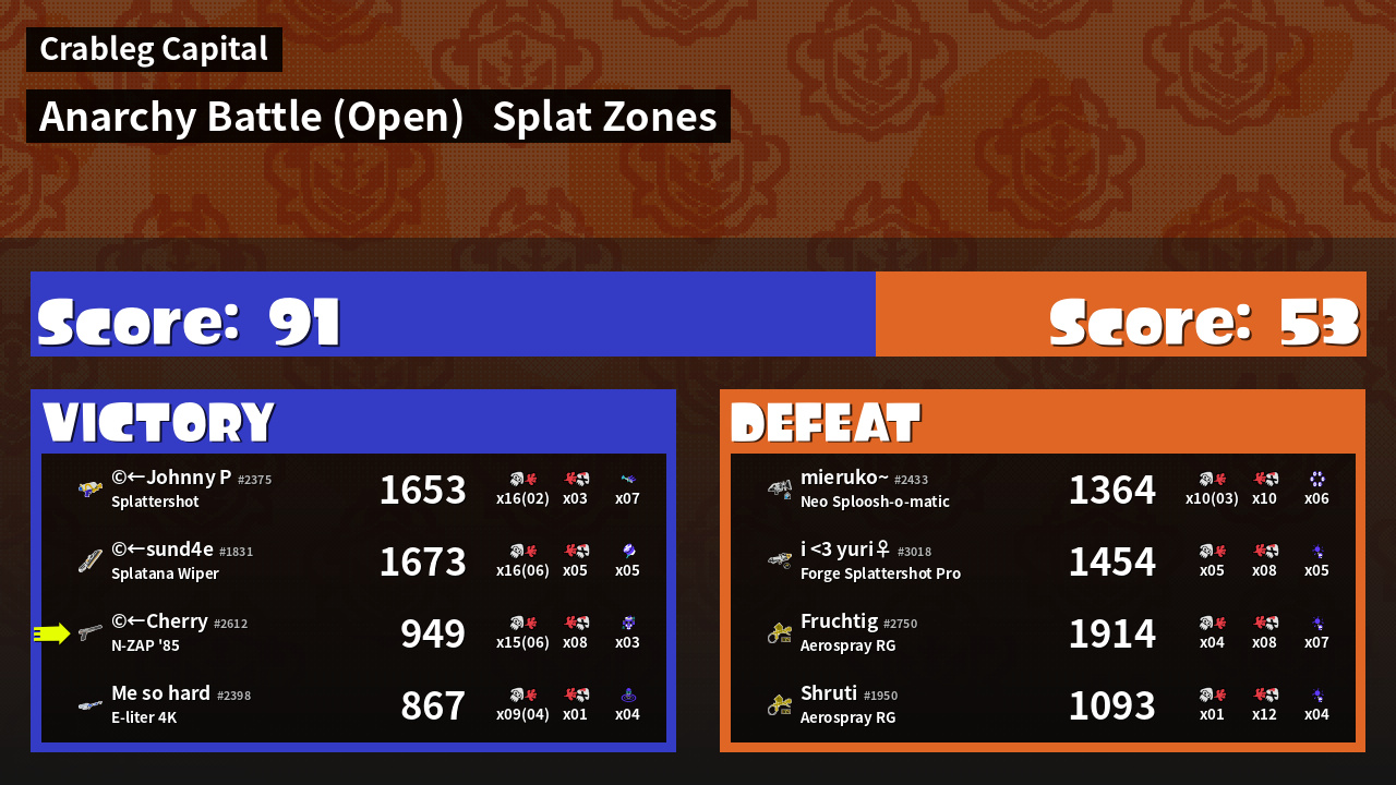 | Mode | Splat Zones - Anarchy Battle (Open) | ||