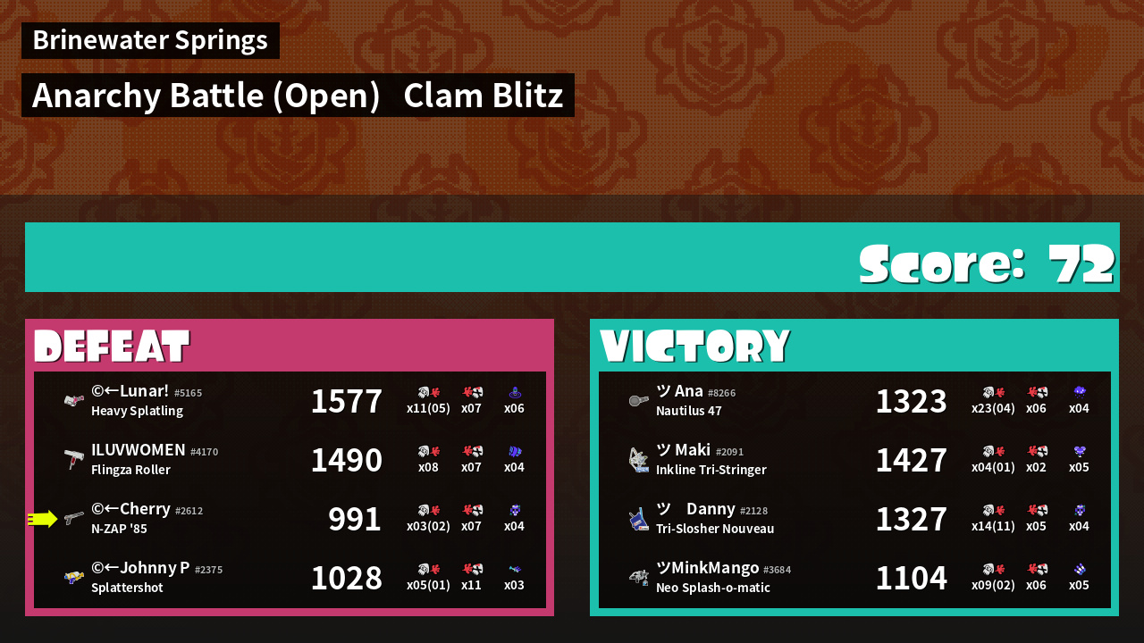 | Mode | Clam Blitz - Anarchy Battle (Open) | ||