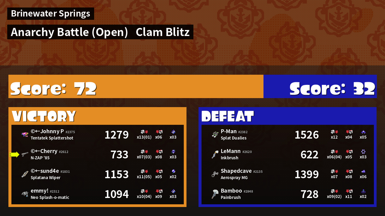 | Mode | Clam Blitz - Anarchy Battle (Open) | ||