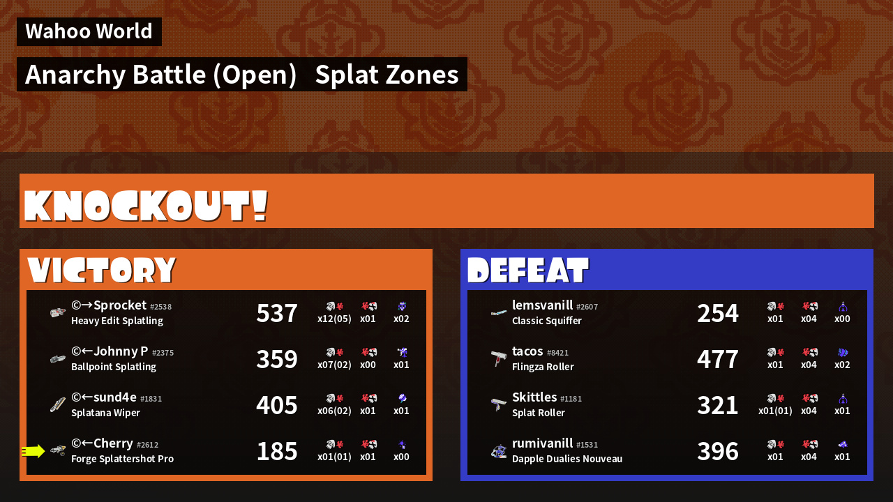 | Mode | Splat Zones - Anarchy Battle (Open) | ||