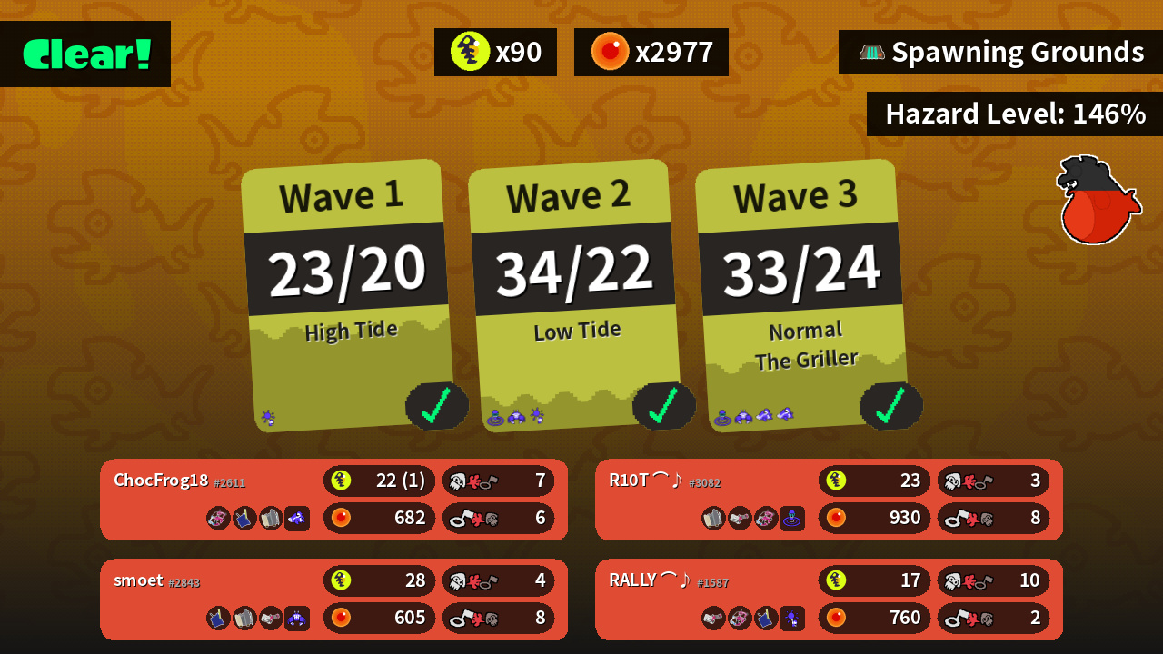 | Weapons | Dapple Dualies Tri-Slosher Sloshing Machine | Tri-Slosher Sloshing Machine Heavy Splatling | Sloshing Machine Heavy Splatling Dapple Dualies | Heavy Splatling Dapple Dualies Tri-Slosher |