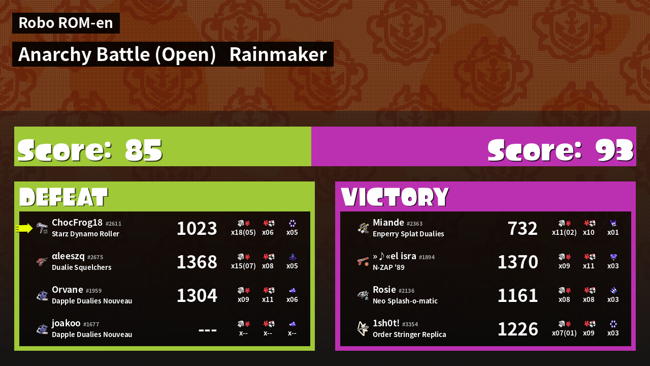 | Mode | Rainmaker - Anarchy Battle (Open) | ||