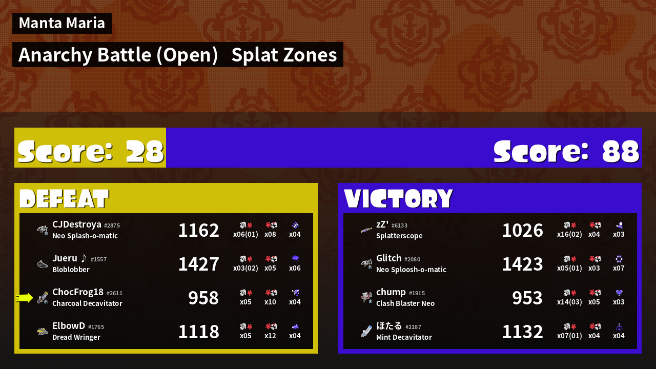 | Mode | Splat Zones - Anarchy Battle (Open) | ||