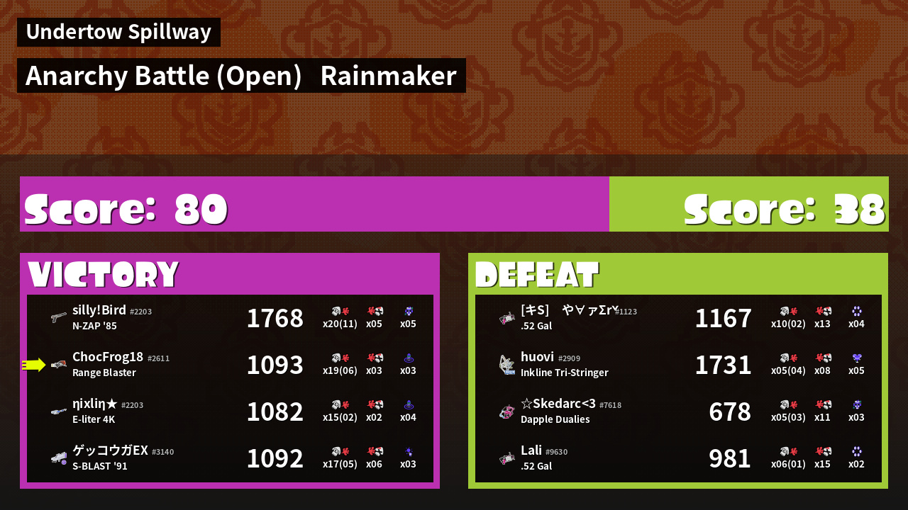 | Mode | Rainmaker - Anarchy Battle (Open) | ||