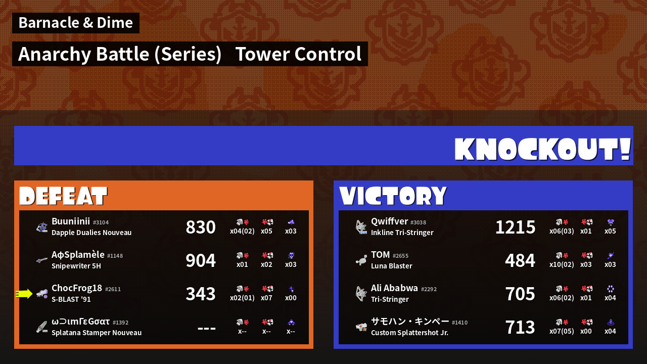 | Mode | Tower Control - Anarchy Battle (Series) | ||