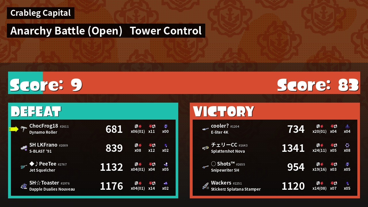 | Mode | Tower Control - Anarchy Battle (Open) | ||