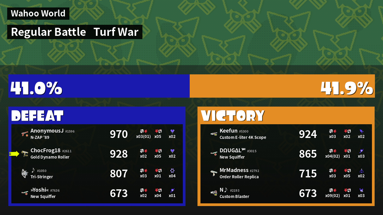 | Weapon | Gold Dynamo Roller ( Splat Bomb / Super Chump) | ||