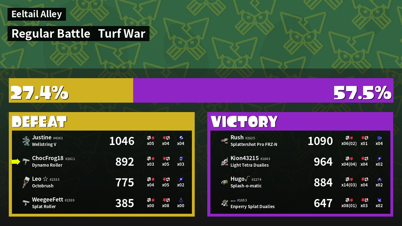 | Mode | Turf War - Regular Battle | ||