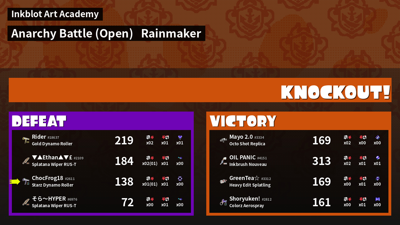 | Mode | Rainmaker - Anarchy Battle (Open) | ||