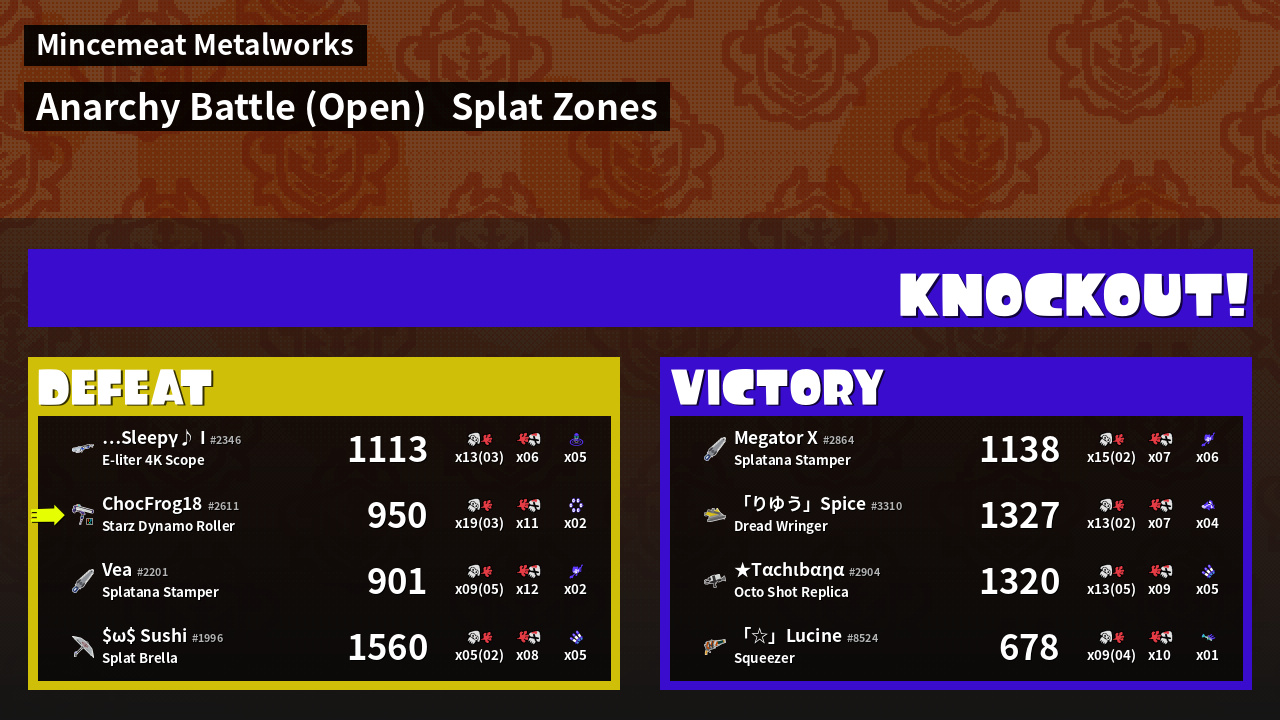 | Mode | Splat Zones - Anarchy Battle (Open) | ||