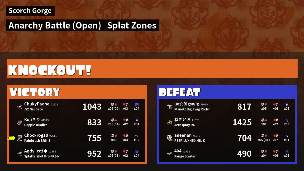 | Mode | Splat Zones - Anarchy Battle (Open) | ||