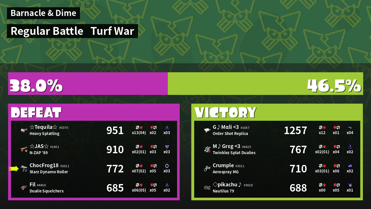 | Mode | Turf War - Regular Battle | ||