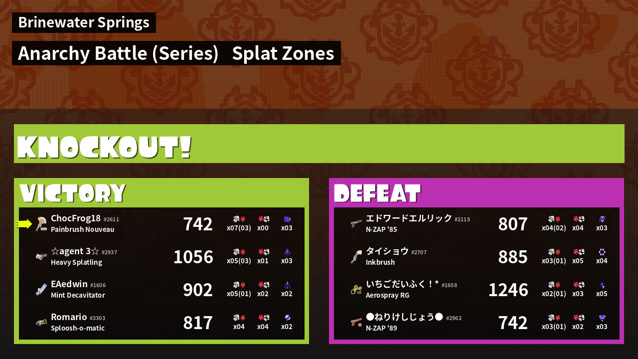 | Mode | Splat Zones - Anarchy Battle (Series) | ||