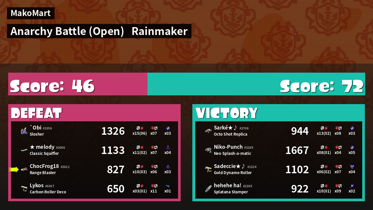 | Mode | Rainmaker - Anarchy Battle (Open) | ||