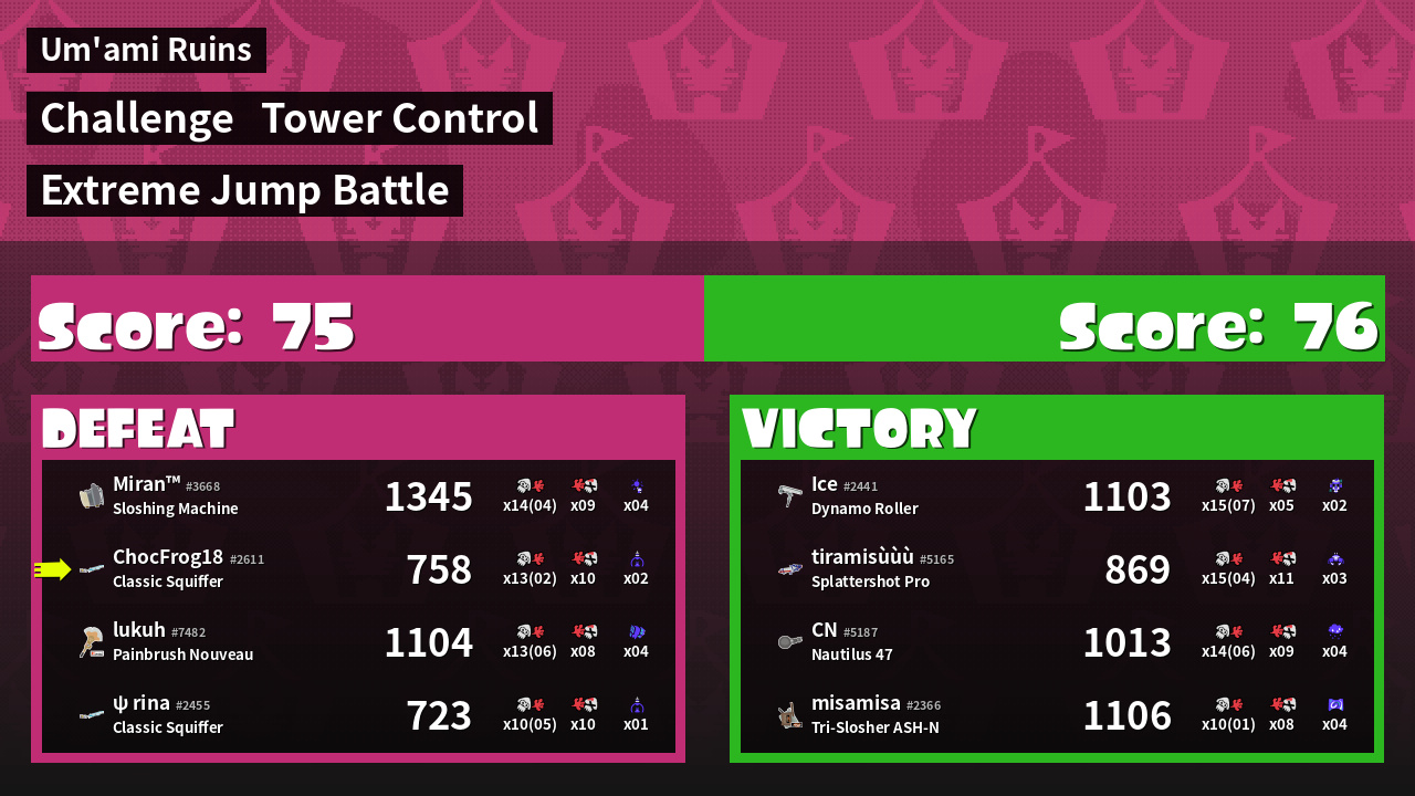 Kills / Deaths | 11 + 2 / 10 > Kill Ratio: 1.10 | ||