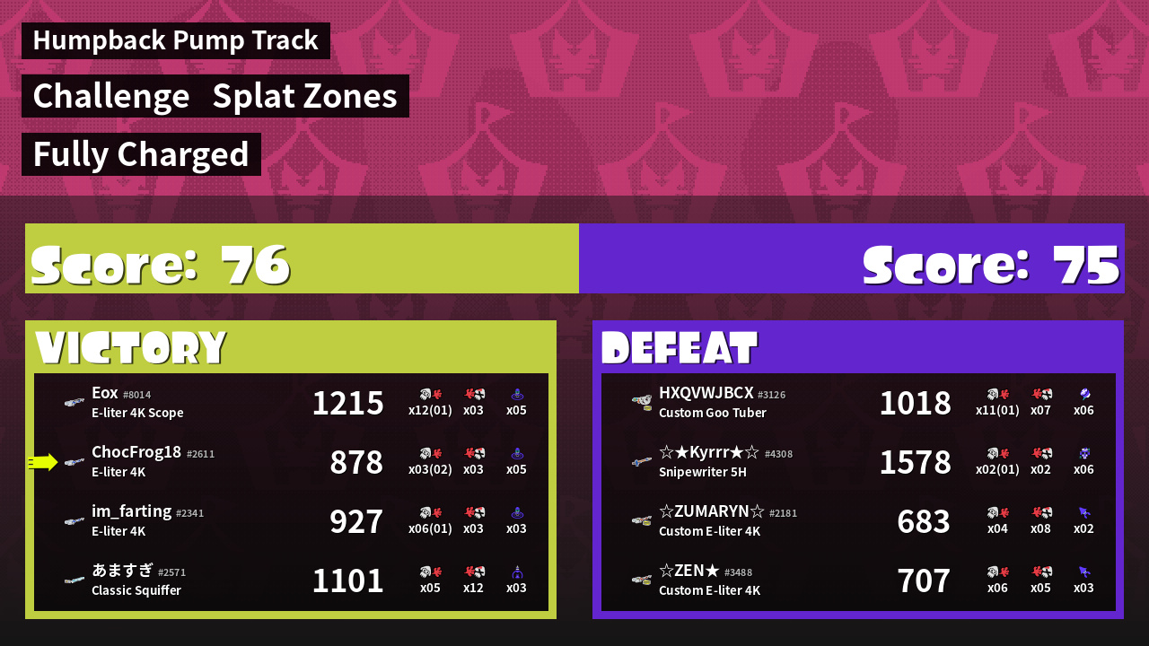 | Medals | #1 Splat Zone Inker #1 Super Jump Spot #1 Splat Assister | ||