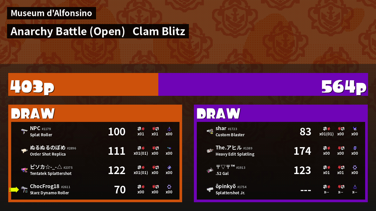 | Mode | Clam Blitz - Anarchy Battle (Open) | ||