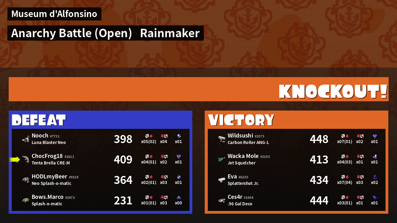 | Mode | Rainmaker - Anarchy Battle (Open) | ||