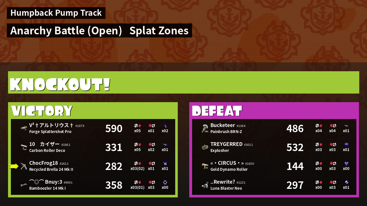 | Mode | Splat Zones - Anarchy Battle (Open) | ||