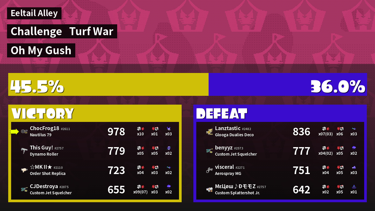 | Mode | Turf War - Challenge | ||