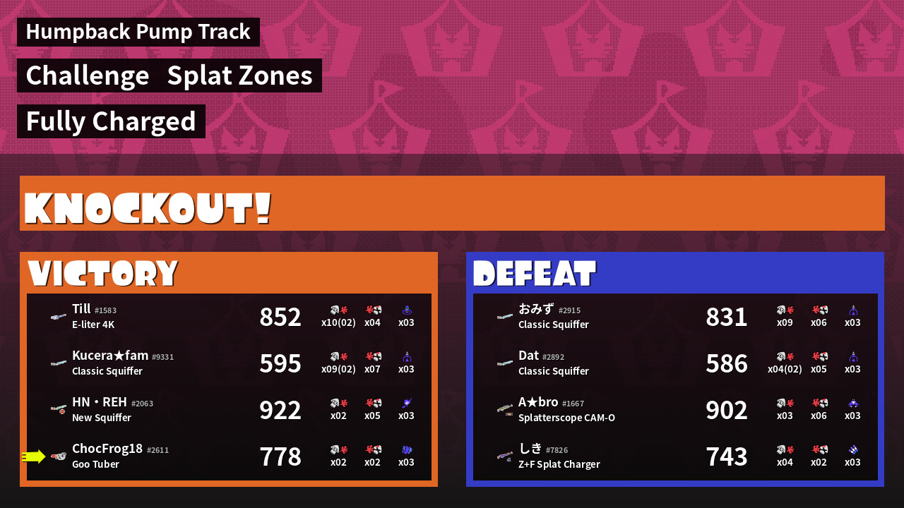 | Medals | #1 Ink Consumer #1 Tenta Missiles User #2 Splat Zone Inker | ||